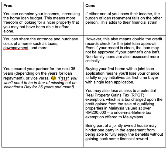 Before you jump the gun, take a step back and rationalise the idea. Love has a way of making everything look good and unproblematic. Reality isn’t always as lovely. Buying a home together means applying for a joint loan application — but is it really a good idea? Read the pros and cons below.